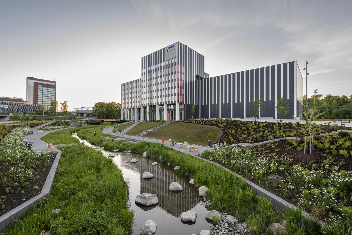 Sujet à de fortes crues, notamment printanières, ce petit cours d'eau, paraît presque anecdotique. Pourtant, c’est dans son lit que se trouve la construction de nouveaux bureaux, commerces et logements pour ce secteur de la grande couronne de la capitale Finnoise. Afin de conserver son lit majeur intact, 3 nouveaux parcs publics verront le jour, aménagés le long du ruisseau. Hatsinanpuisto est l’un d’eux.
